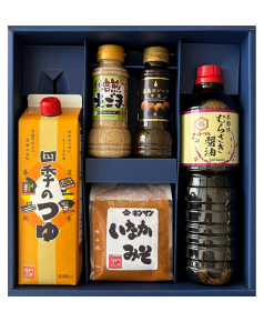 つゆ・醤油・中濃ソース・ドレッシング・味噌の5種がそろった、暮らしを彩る調味料セットです。
